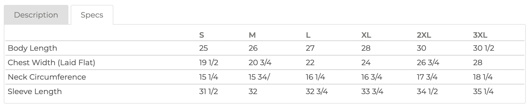 Size Chart